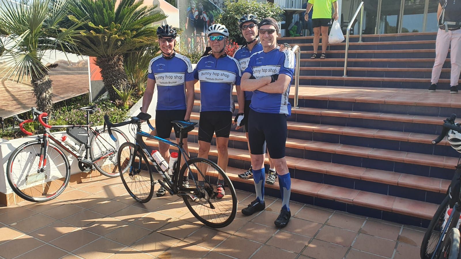 Dann ging es aus Palma raus Richtung Col de sa Creu. Hier kurbelte jeder sein Tempo und oben trafen wir uns. Auch dort waren mehr Sportler unterwegs, als üblich. Nach zwei Jahren Pause wollte jeder auf der Insel radeln. Über Calvia ging es dann nach Escapdelia. Dort wurden wir von Polizisten abrupt gestoppt. Wir waren an der abgesperrten Strecke des Radrennens Mallorca 312, bei dem fast die komplette Insel umrundet wird. Die Streckenführung war von Andratx in unsere Richtung. Da die Strecke gesperrt war, konnten wir unseren ursprünglichen Plan beerdigen. Nach kurzer Beratung beschlossen wir, das Beste daraus zu machen und in der Richtung des Rennens mitzufahren. In Galilea wollten wir dann ausscheren und unsere Mittagspause machen. Thomas war nicht mehr dabei. Nachdem ihn einer schnell überholt hatte, verlor er die Nerven und fuhr bis Alaro im Rennen mit.