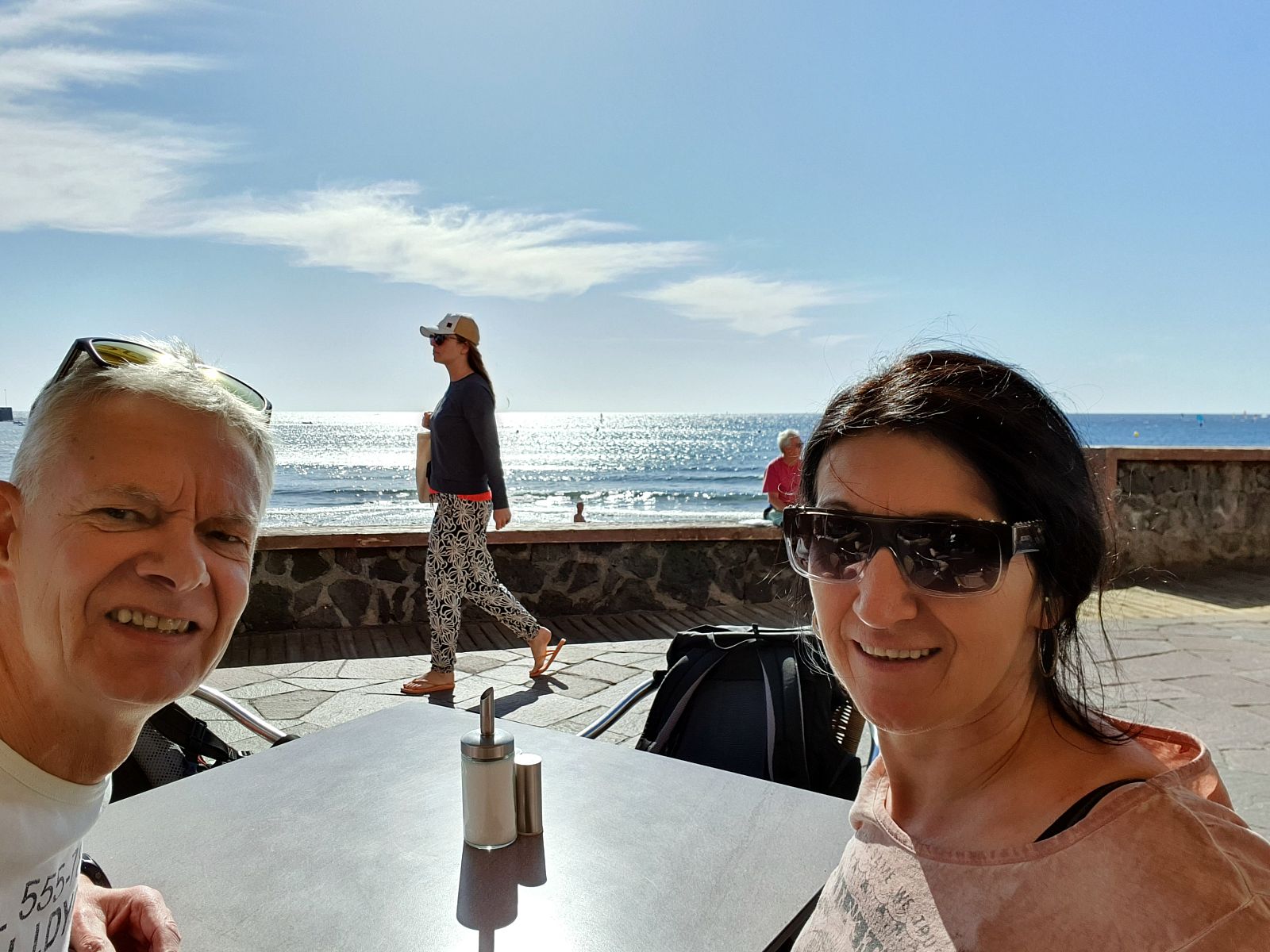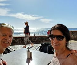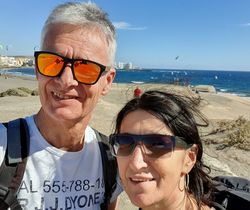 Mit Auto über TF 1 nach El Medano. Der Surfer Ort hat uns gut gefallen.Kaffee, Wasser und Sekt für 4,70 Euro.Wanderung in nächste Bucht.