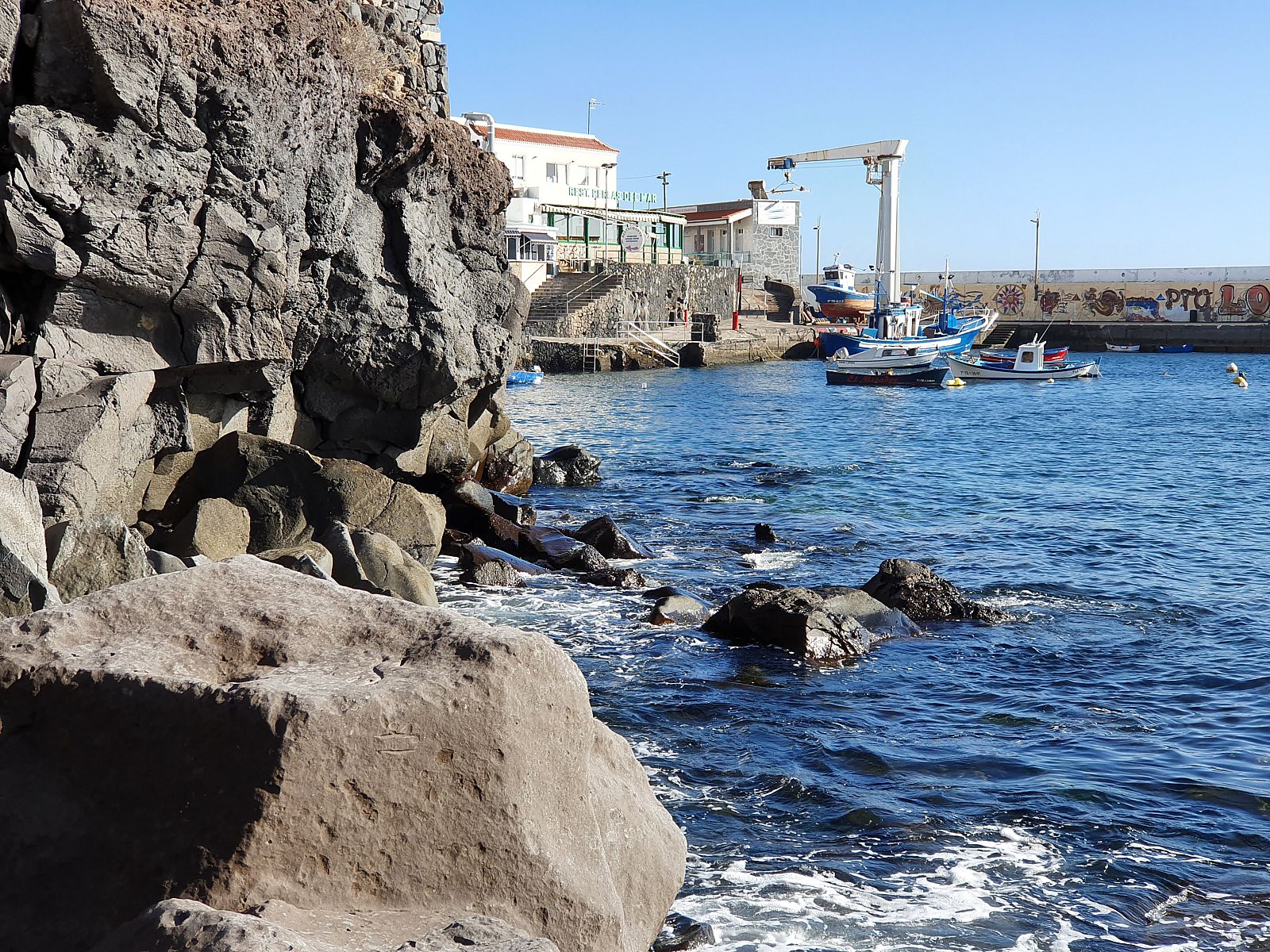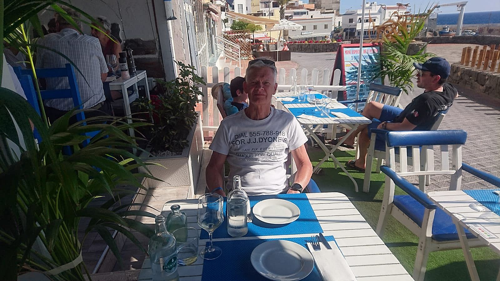 Dann mit Auto nach Los Abrigos. Dort am Hafen super Fischplatte gegessen. Mit Vorspeisen und Getränken unter 50 Euro. Dann Einkaufen im Mercadona.