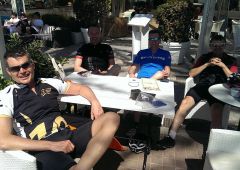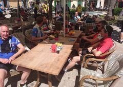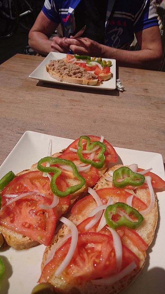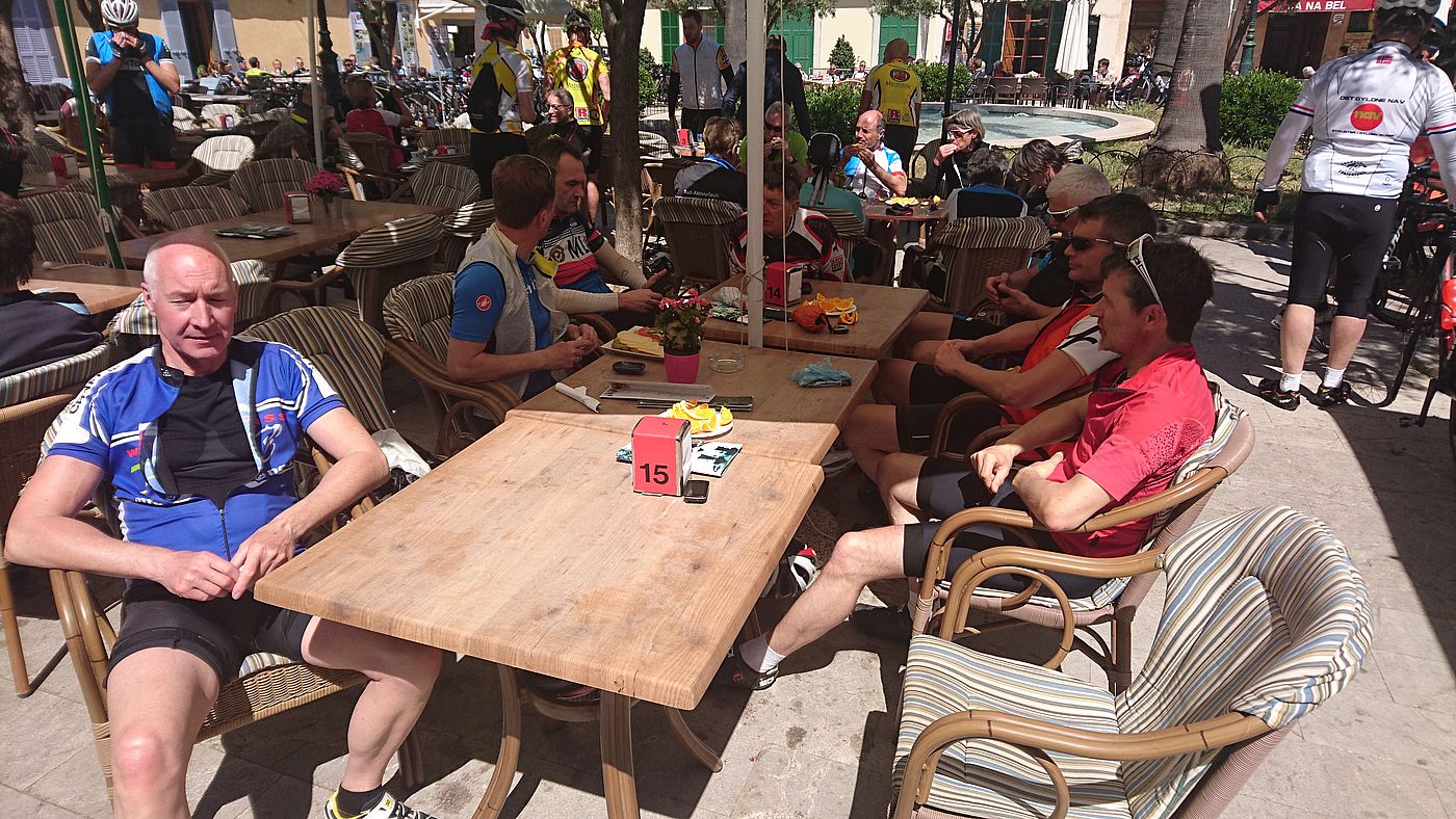 Diesmal kam der Klassiker nach Petra schon als erste größere Tour für alle am Anfang zum Zug. War wie immer auf der Hinfahrt über Porreres schön. Auf der Hinfahrt hatten wir dort einen Pause, weil ein Radrennen im Gang war. Das kam mir nach dem anstrengendem Ritt über Kamelbuckel sehr entgegen. Die Strecke wird in Fachkreisen auch die "Magister L Ösi Vernichtungsstrecke" genannt. In Petra wie immer spanische Pa amb oli und Orangen vom Feinsten.