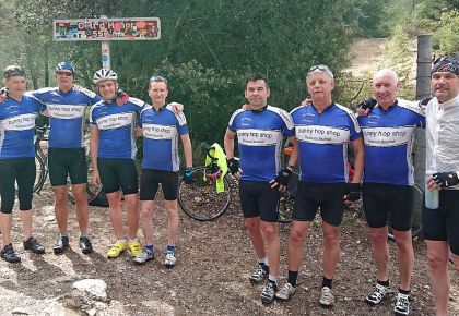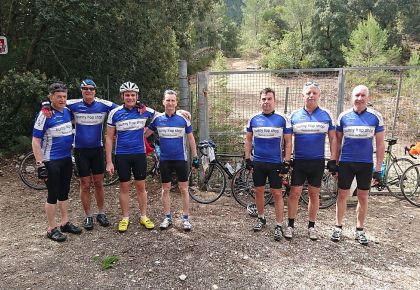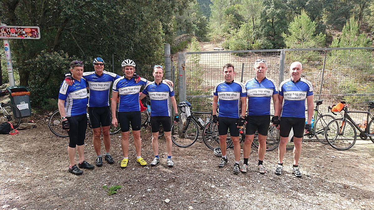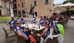 Wir rollten also in Richtung Bunyola los. Kurz vor dem Einstieg zum Col hatte der Käpt'n in den letzten Jahren immer seinen berühmten Pinkeltrick gebracht. So hoffte er auch diesmal durch den Pinkel-Stop der Jungs mit den Konfirmandenblasen den entscheidenen Vorsprung für den Sieg zu bekommen. Er rollte nämlich dann immer mit dem Zufahrer flott davon. Diesmal erwischte es ihn aber auch. Wahrscheinlich hatte er beim Frühstück einen Kaffee zuviel konsumiert. Als er dann nach einer Express-Entleerung mit dem Zufahrer anrollte, kam im das Glück zur Hilfe. Beim Anfahren merkte ich, dass mein Hinterreifen Luftmangel hatte. Ich musste also flicken. Bis wir dann los kamen, war er über alle Berge.
