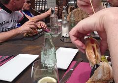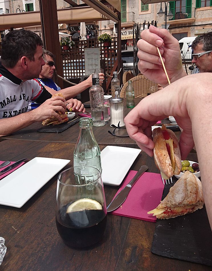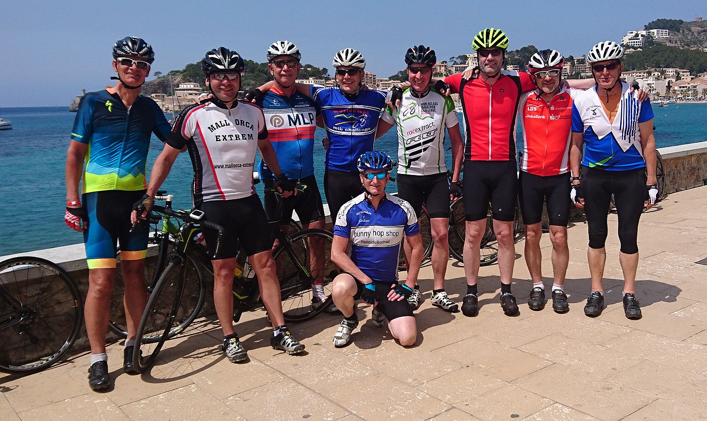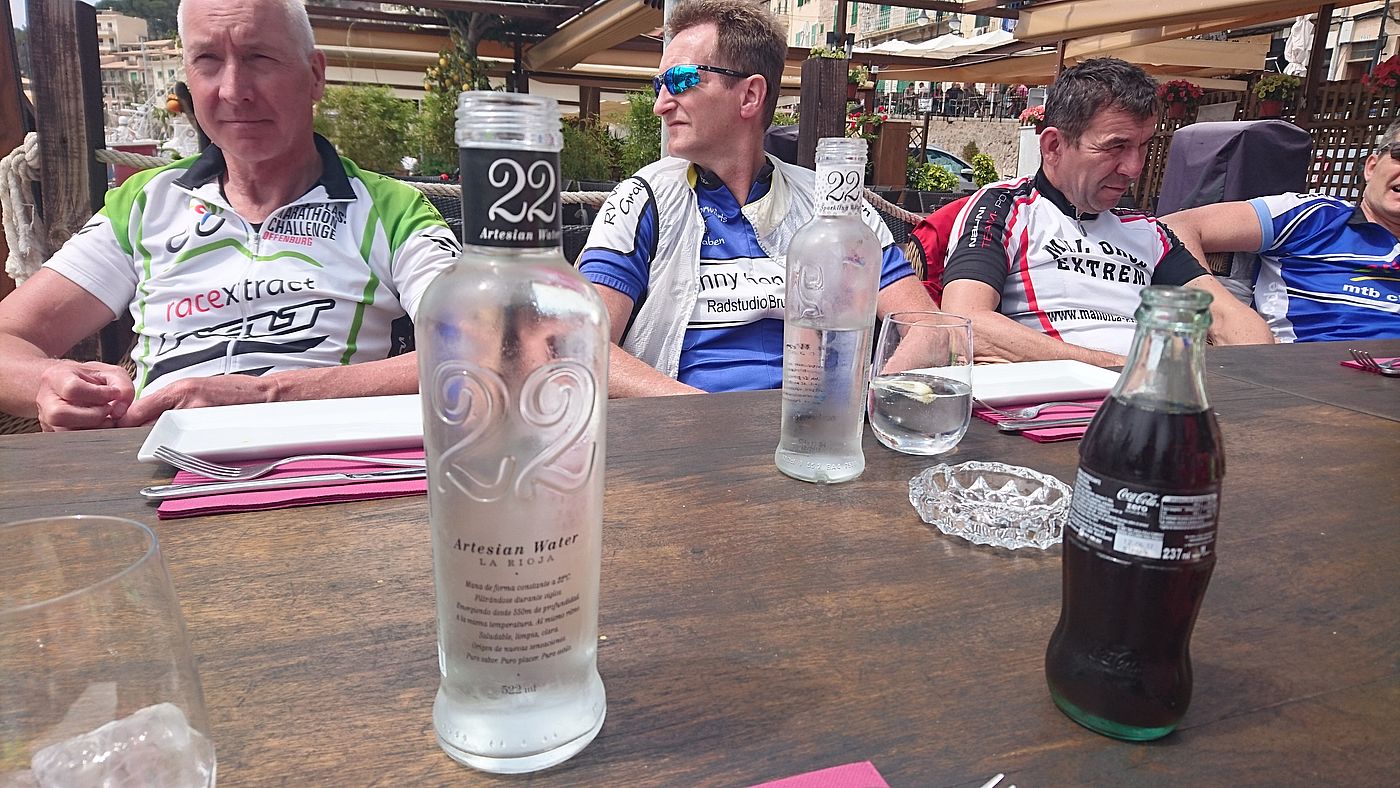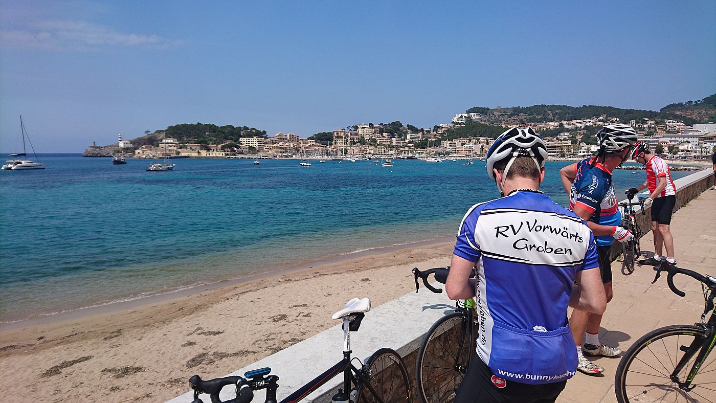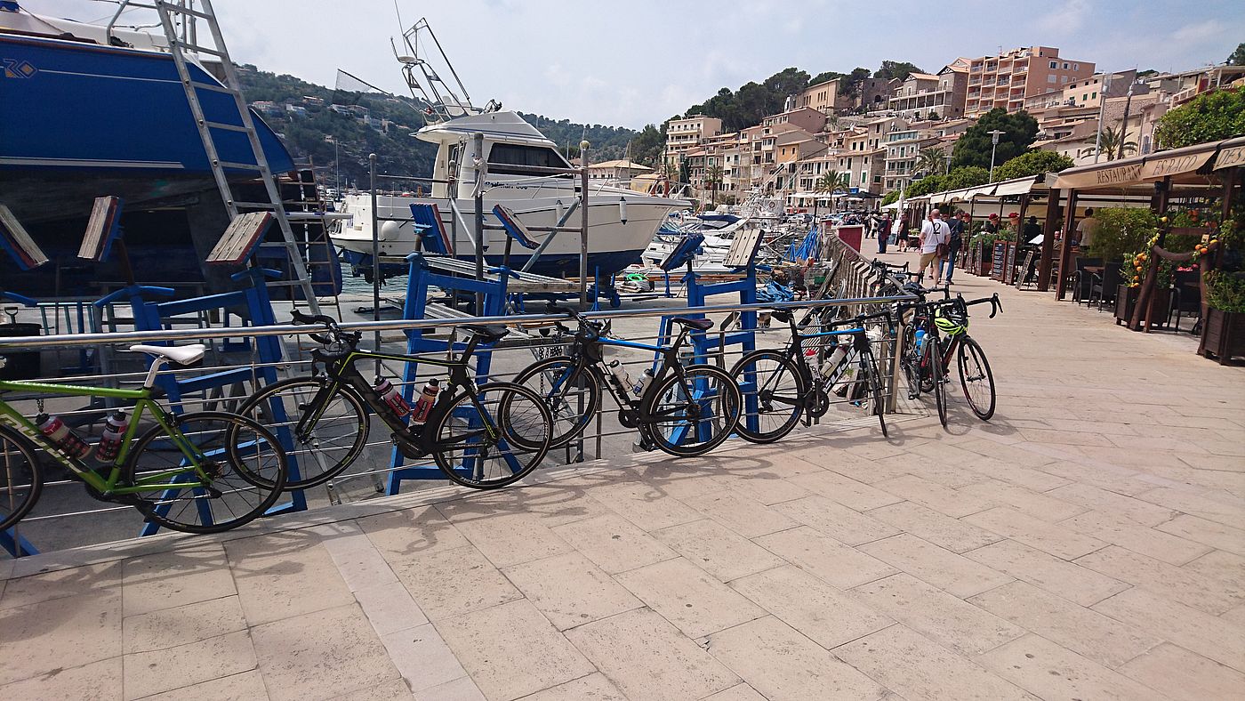 nach kurzer Verschnaufpause ging es über die Küstenstrasse gen Norden. Über Deia erreichten wir diesmal ohne Col die Stadt Soller. Wir mussten wieder feststellen, flach ist auf der Küstenstrasse nichts. Alle freuten sich dann auf den Hafen mit seinen schönen Ausblicken und den guten Bocadillos.