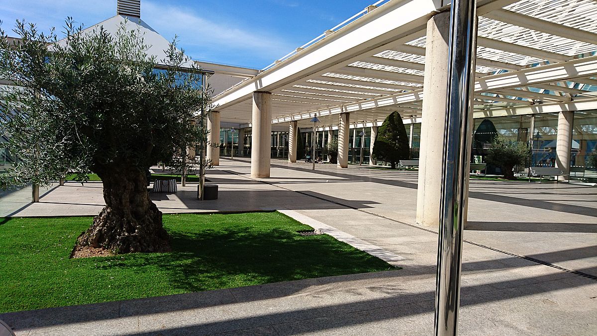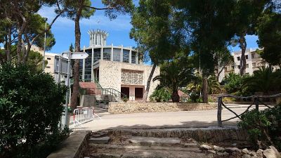 Dann machte ich eine interessante Entdeckung. Einige Meter entfernt vom Riu Playapark gibt es eine ruhige Welt, die so garnicht zur lärmenden Playa passt. Durch ein großes Eisentor geht es in einen Park. Hier befindet sich die Kirche La Porciuncula. Außerdem liegt hier der Eurocampus und die Deutsche Schule.
