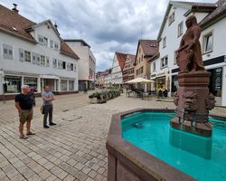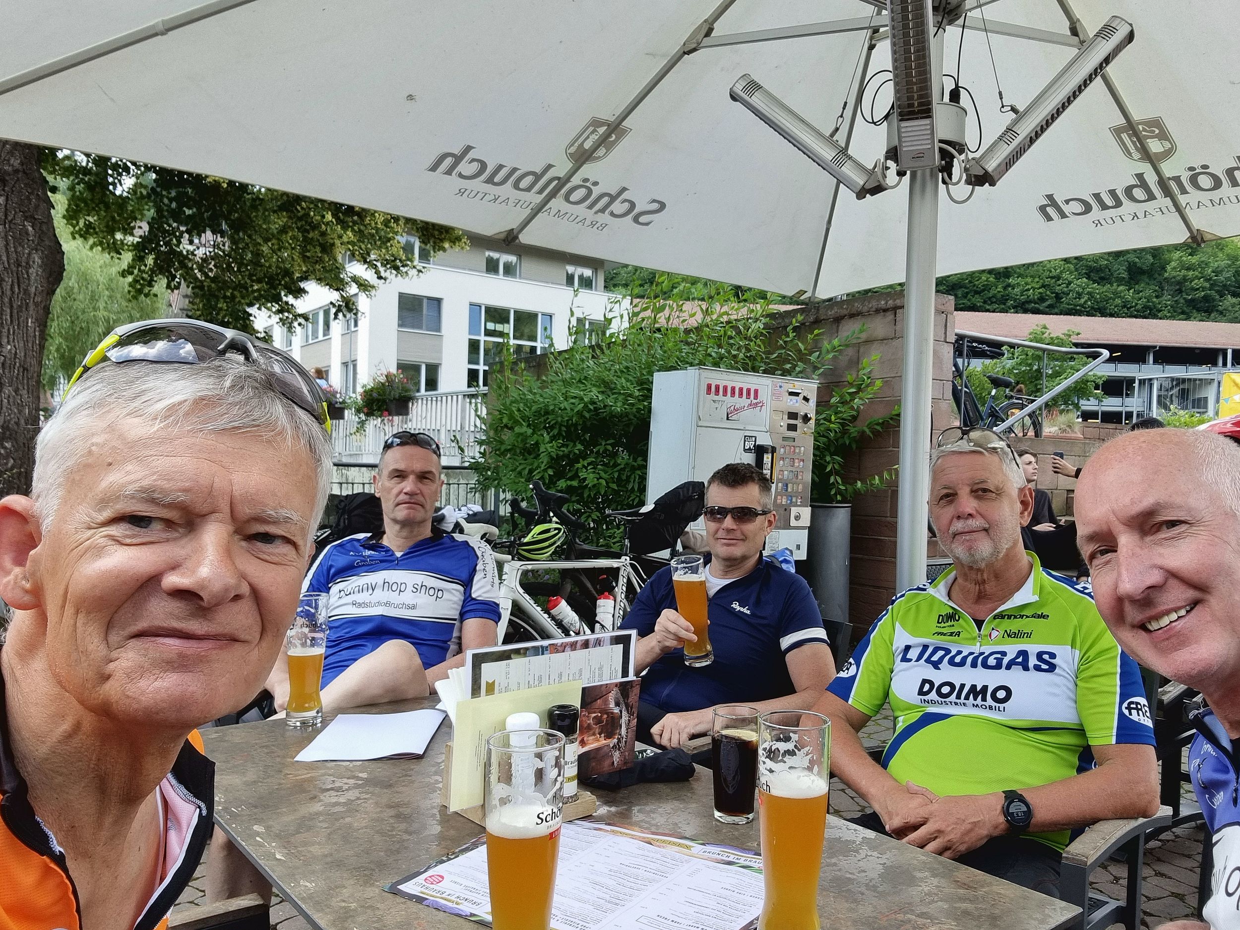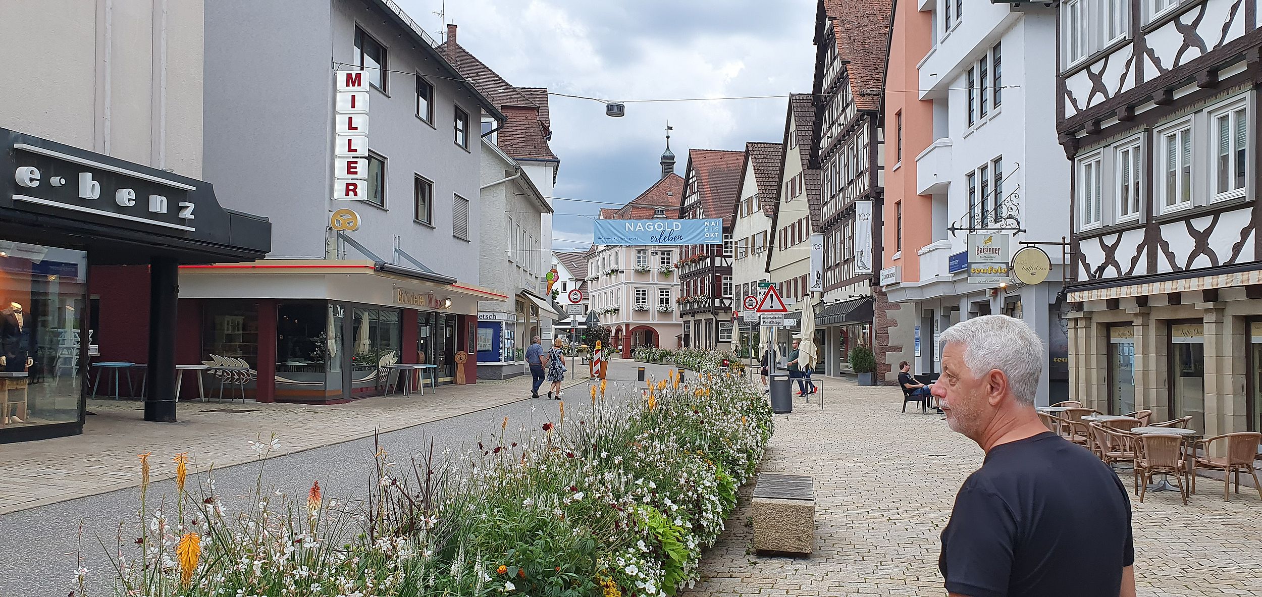 Danach rollten wir Richtung Pforzheim. Durch Pforzheim zu fahren ist immer Stress, so auch diesmal. Irgendwann hatten wir es geschafft und waren endlich auf dem Radweg an der Nagold. Auf dem ging es über Bad Liebenzell nach Calw. Hier hatten wir Hunger und legten eine Pause ein. Wir hatten die Wahl zwischen einem Streetfood Festival und dem Schönbuch Brauhaus und entschieden uns für letzteres.