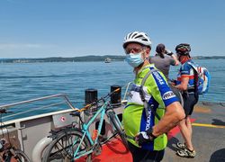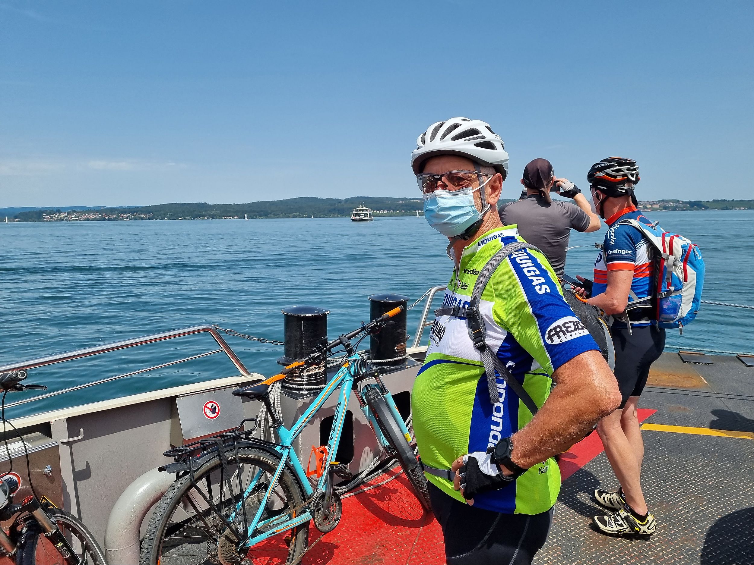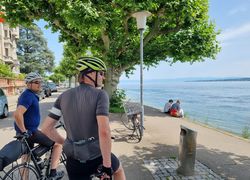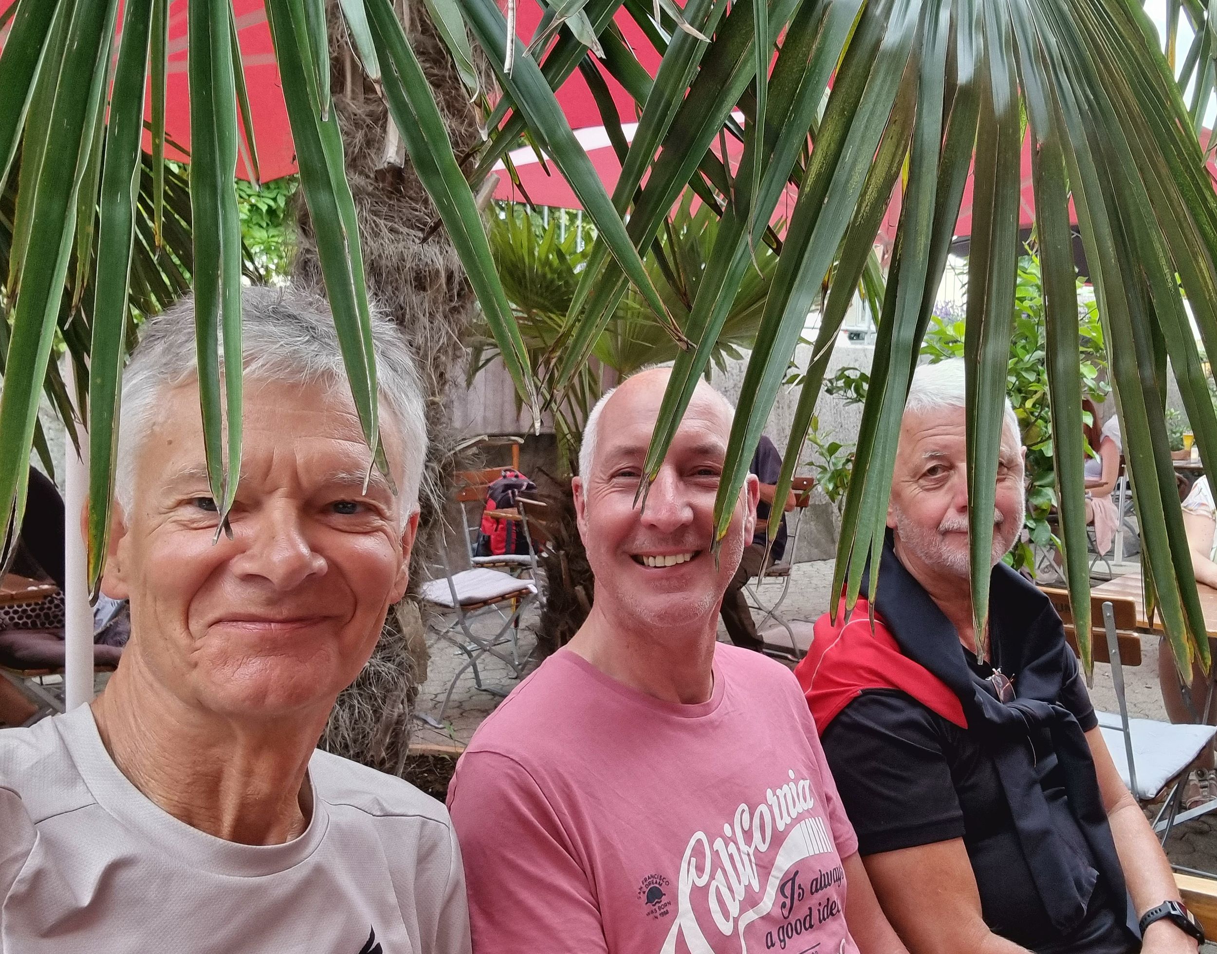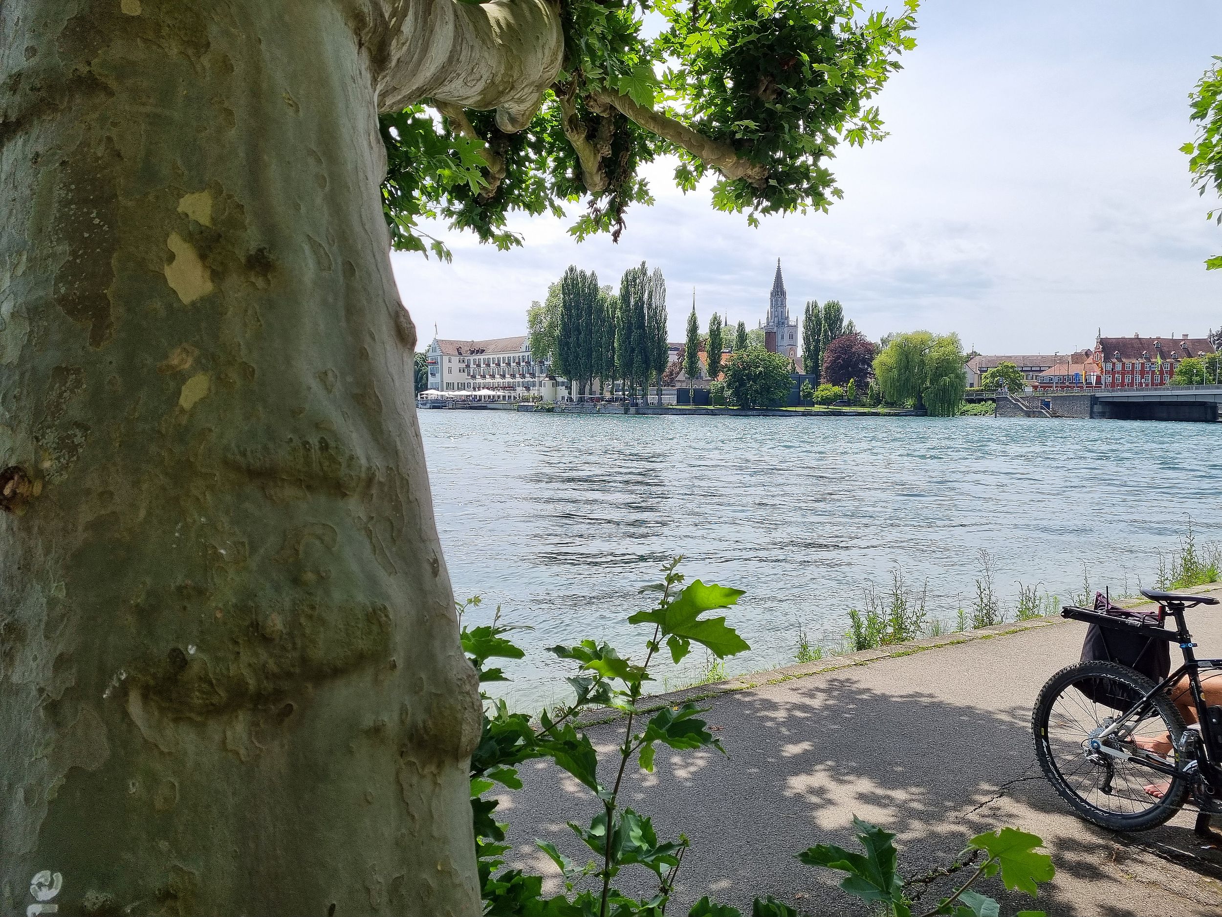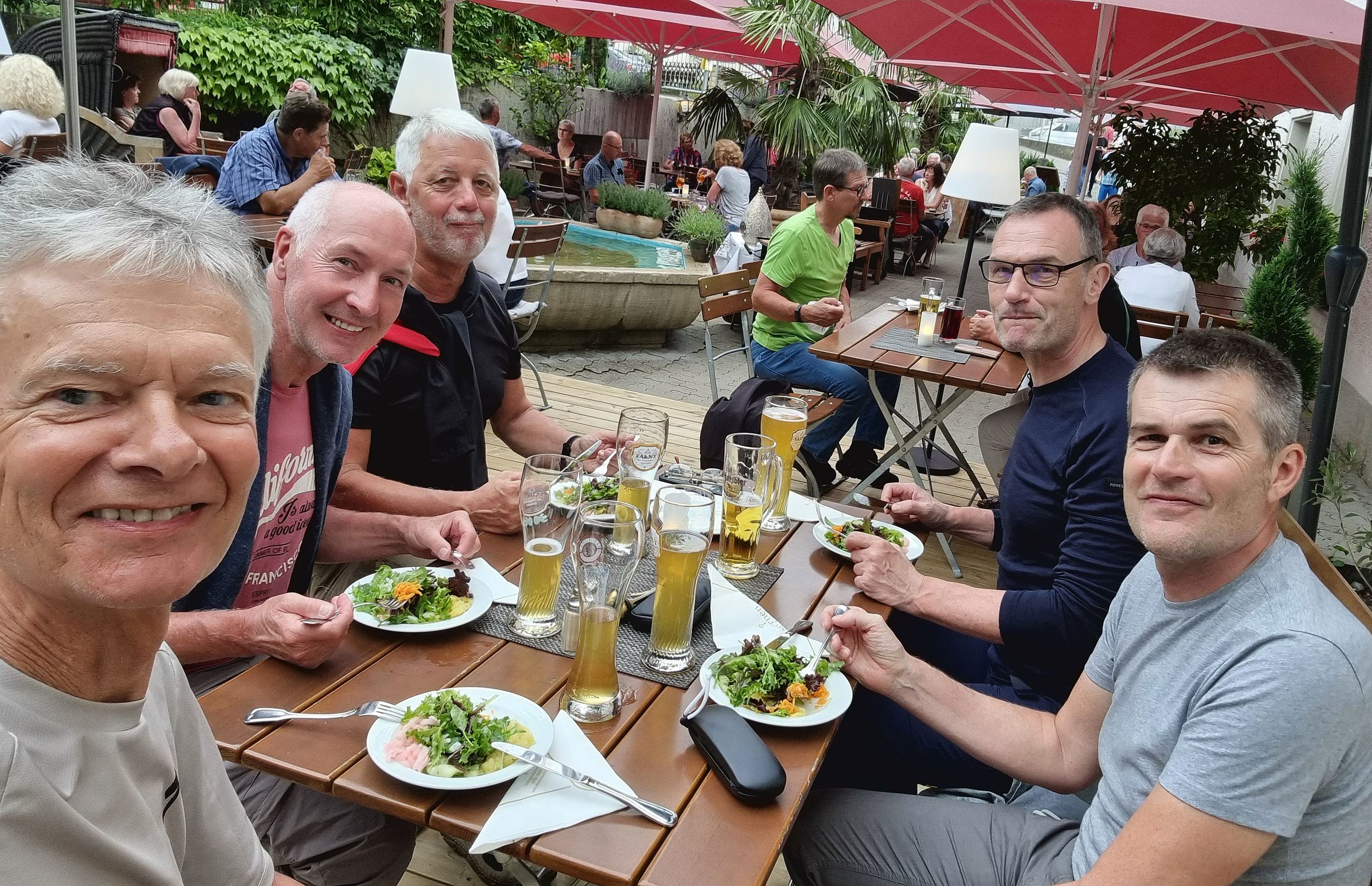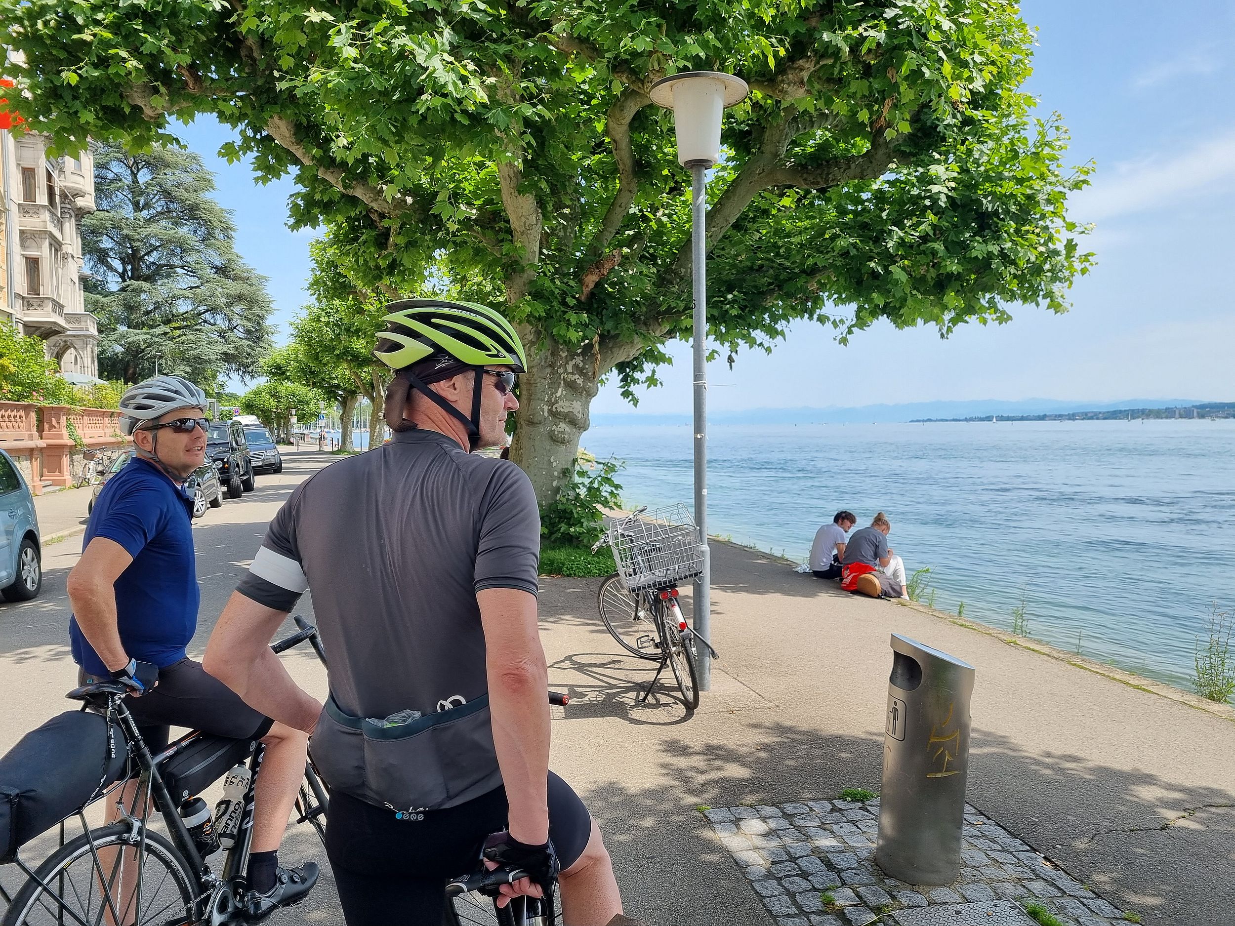 Dann war es ein schönes Gefühl, rechts neben dem Radweg, den Bodensee zu sehen. Durch Konstanz fuhren wir an den See zum Augustiner Biergarten, wo wir das obligatorische Gruppenbild machten und uns ein Bier genehmigten.