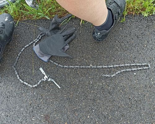 Und wie es dann so läuft, wenn man es eilig hat, ereilte Pedro der erste Kettenriss seines Radlerlebens.