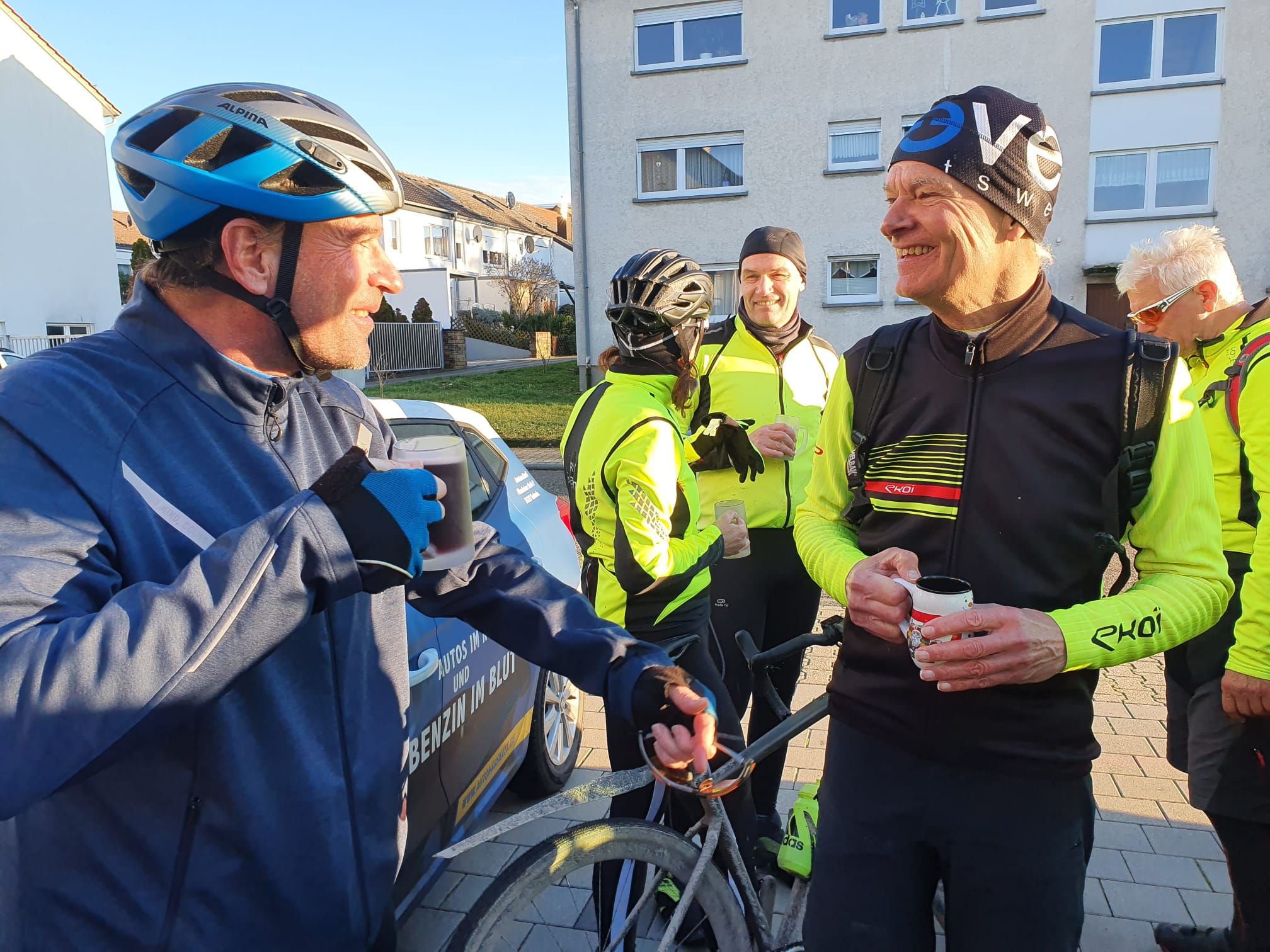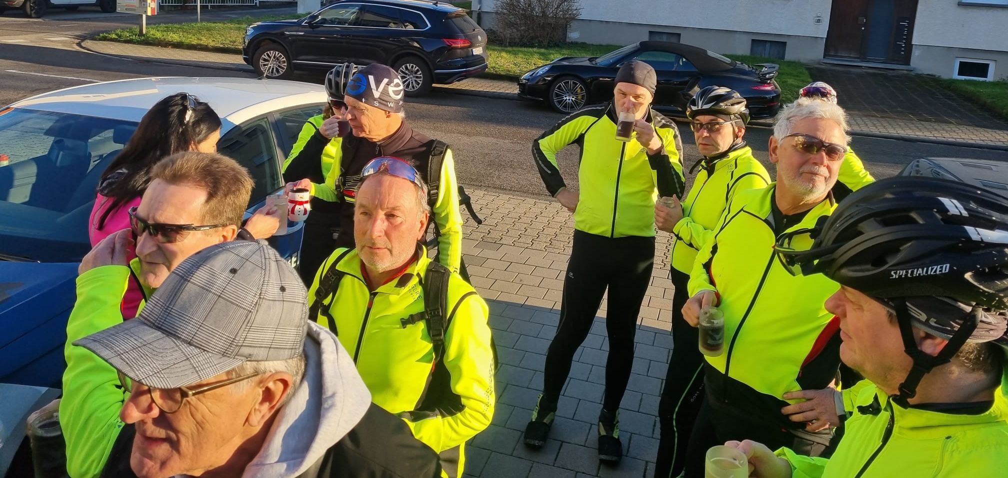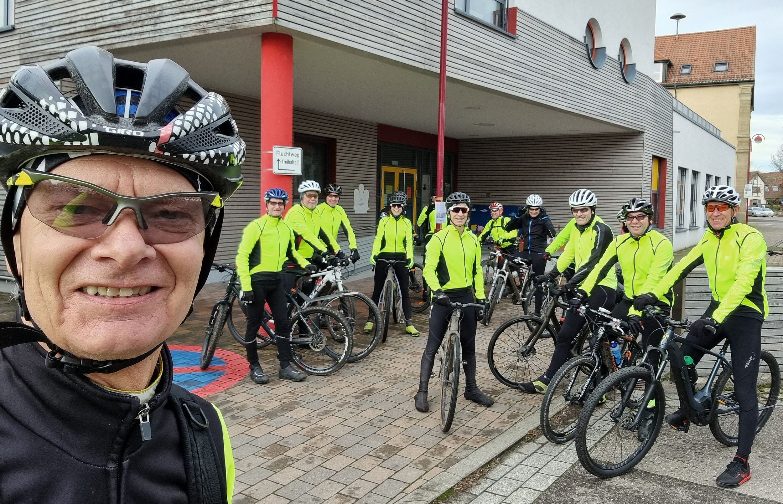 Bei frühlingshaftem Wetter war die Teilnehmerzahl unserer traditionellen Ausfahrt so groß wie nie. Mit erfreulicherweise 2 Mädels und 13 Jungs sind wir auf die Rheinrunde gegangen. Pedros Platten hat uns eine kleine Pause verschafft. Der Abschluss war bei Giovanni im Hof der "La Piazza". Es war für uns sehr schön, mal (fast) alle wieder bei dieser Ausfahrt zu sehen.