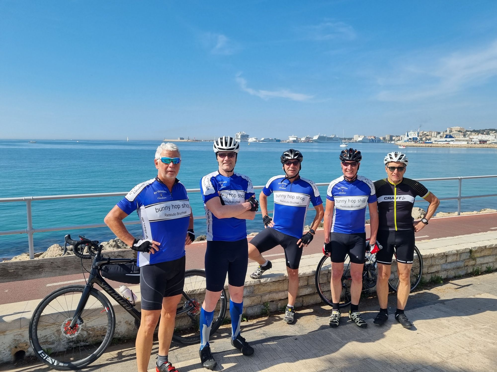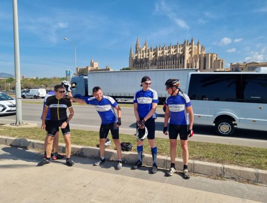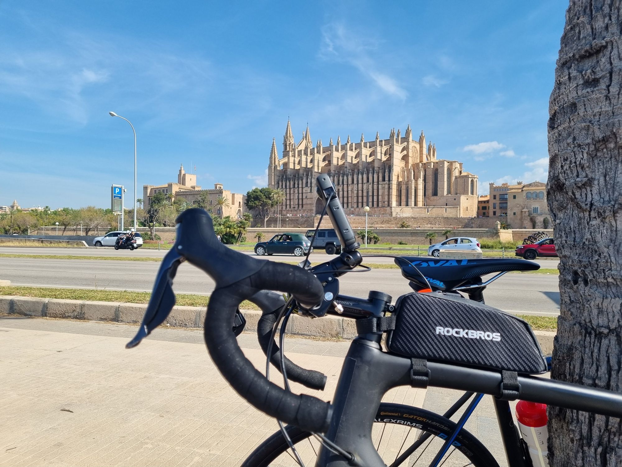 Auf unserer 3. Tour wollten wir den Sohn von Bernes treffen, der Sa Coma war. Also starteten wir an der Playa in Richtung Palma / Antratx. Der Radweg war wie immer eine reine Nervensache. Wenn du da nicht hellwach bist rumpelt es. Aber wieder sind wir ohne Unfall bis Palma gekommen. Vor der historischen Kulisse der Kathedrale musste natürlich das obligatorische Gruppenbild her. Dank netter Fotografin klappte das auch reibungslos.