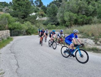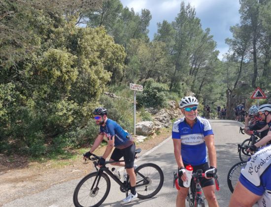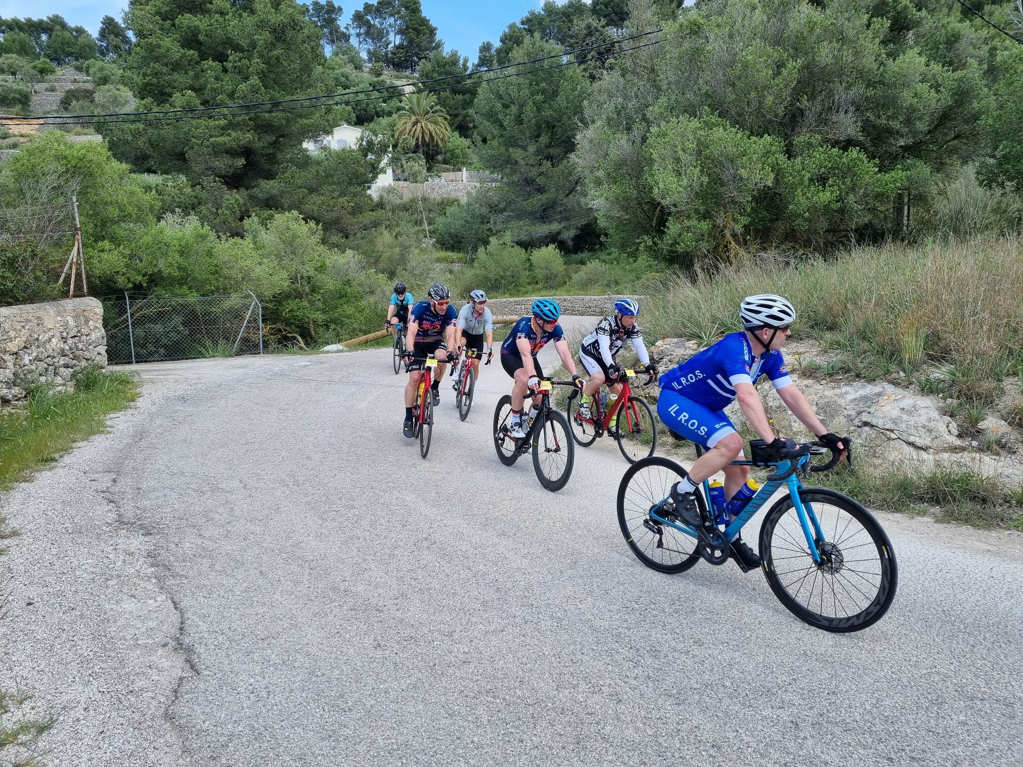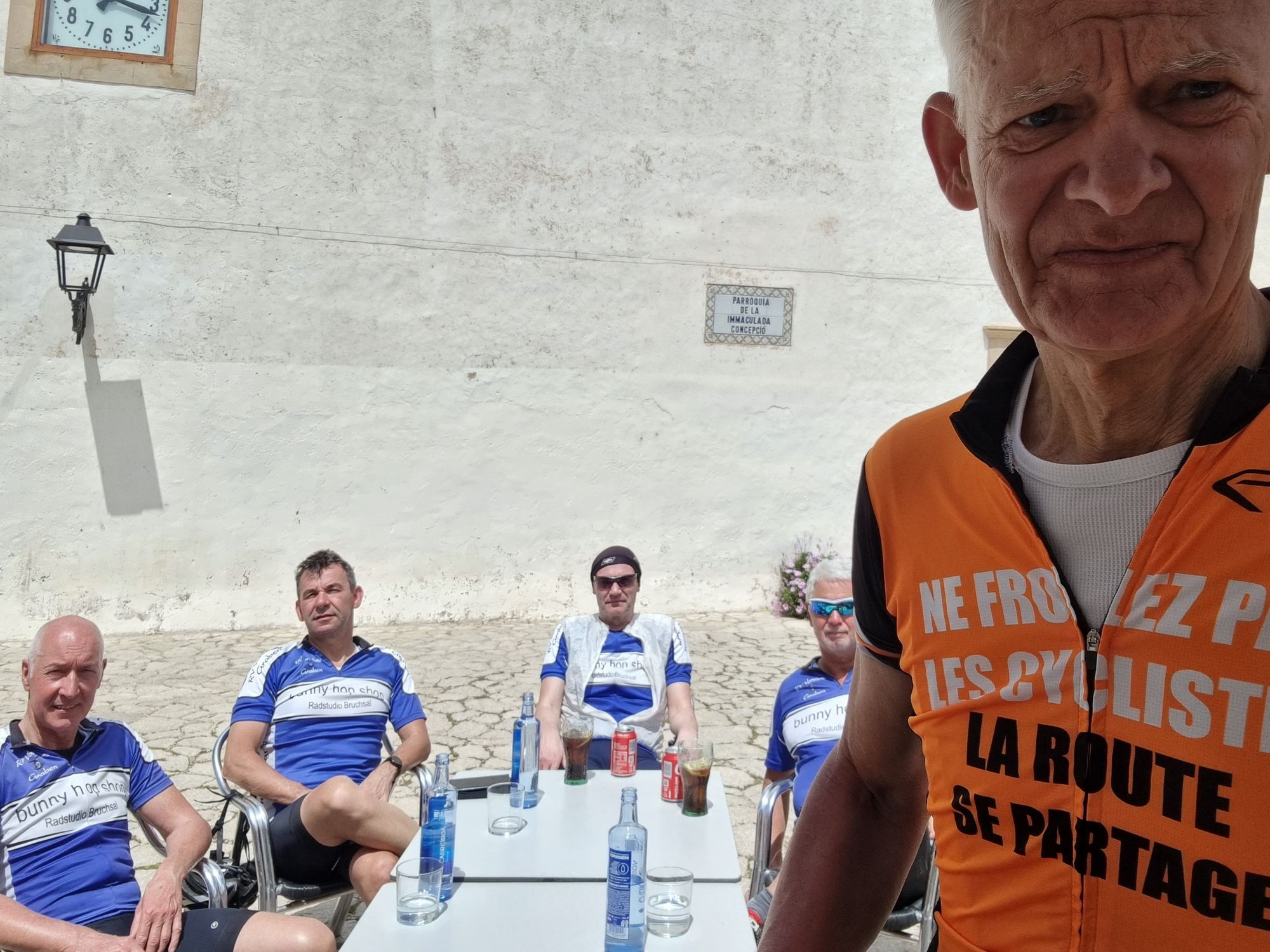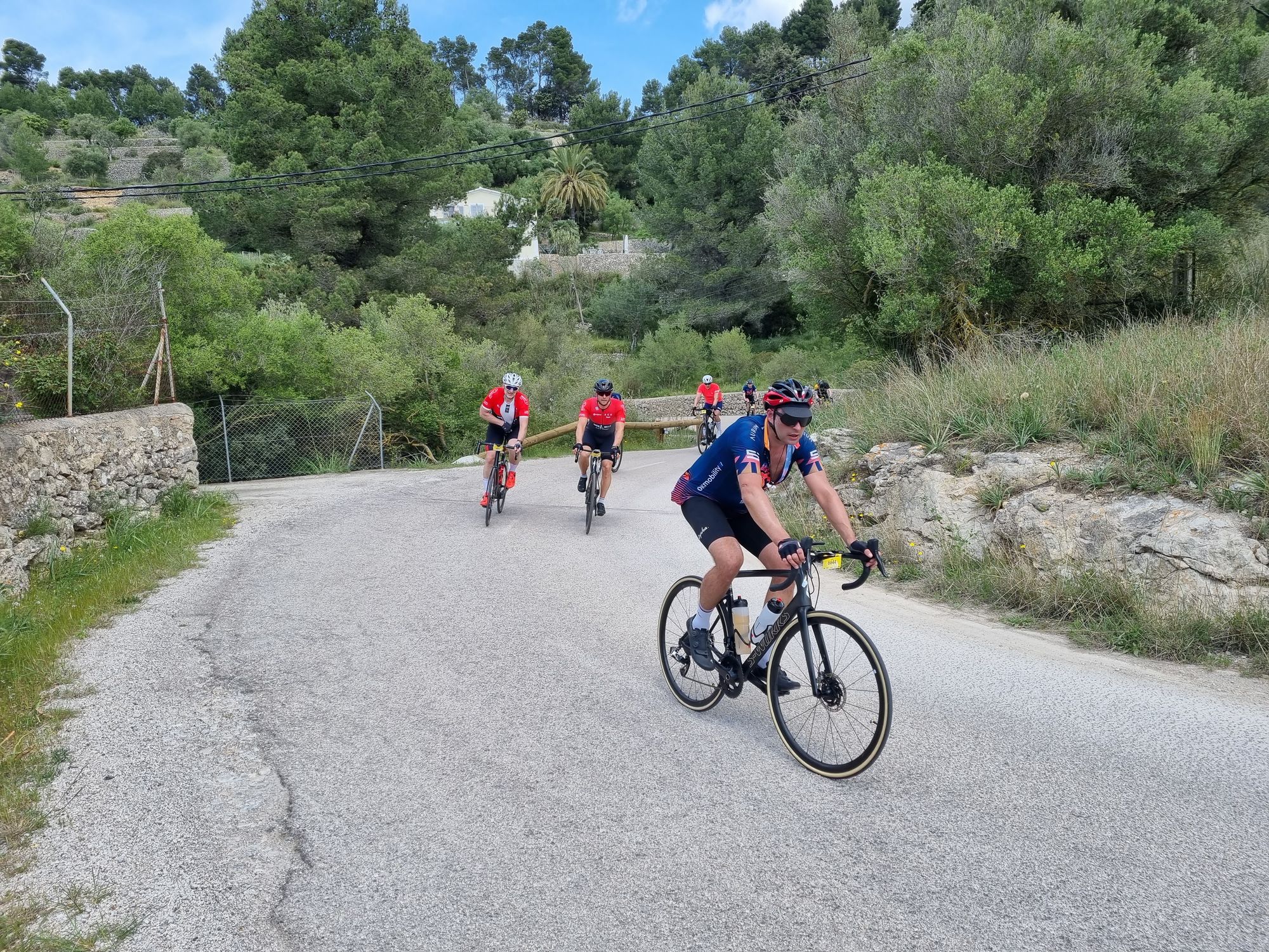 Dann ging es aus Palma raus Richtung Col de sa Creu. Hier kurbelte jeder sein Tempo und oben trafen wir uns. Auch dort waren mehr Sportler unterwegs, als üblich. Nach zwei Jahren Pause wollte jeder auf der Insel radeln. Über Calvia ging es dann nach Escapdelia. Dort wurden wir von Polizisten abrupt gestoppt. Wir waren an der abgesperrten Strecke des Radrennens Mallorca 312, bei dem fast die komplette Insel umrundet wird. Die Streckenführung war von Andratx in unsere Richtung. Da die Strecke gesperrt war, konnten wir unseren ursprünglichen Plan beerdigen. Nach kurzer Beratung beschlossen wir, das Beste daraus zu machen und in der Richtung des Rennens mitzufahren. In Galilea wollten wir dann ausscheren und unsere Mittagspause machen. Thomas war nicht mehr dabei. Nachdem ihn einer schnell überholt hatte, verlor er die Nerven und fuhr bis Alaro im Rennen mit.